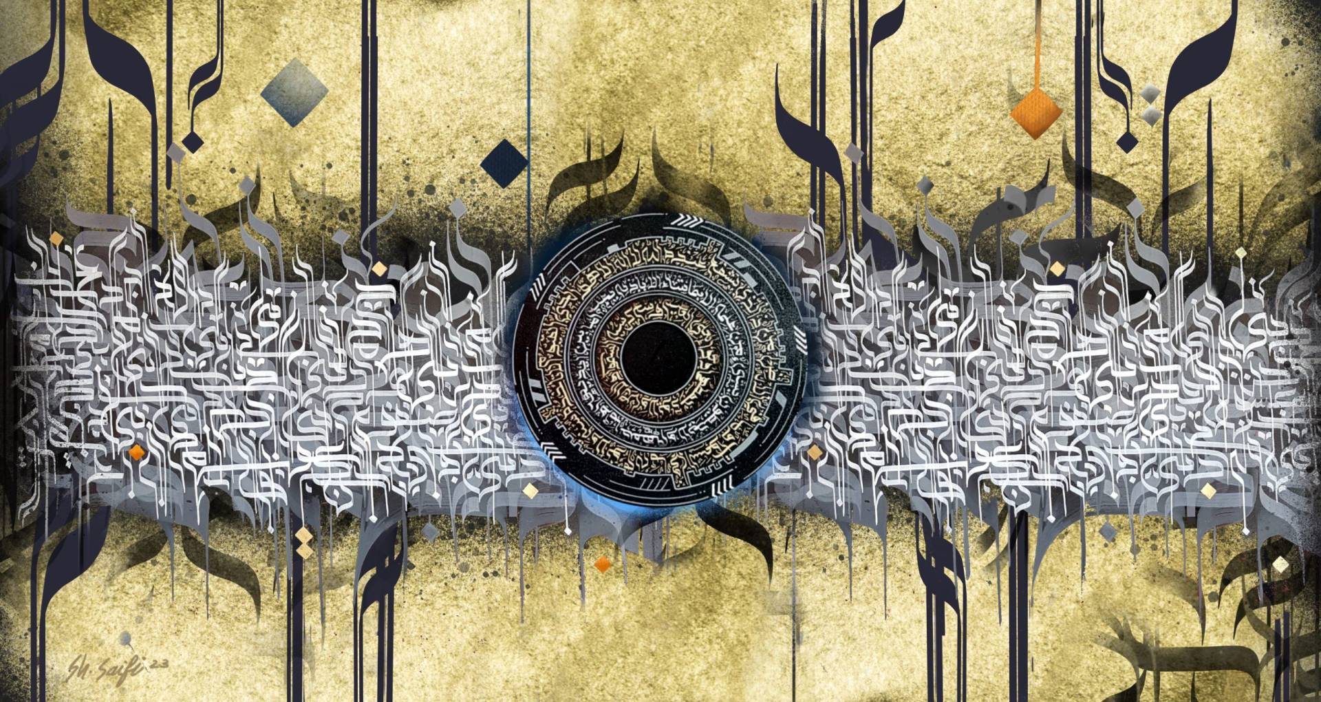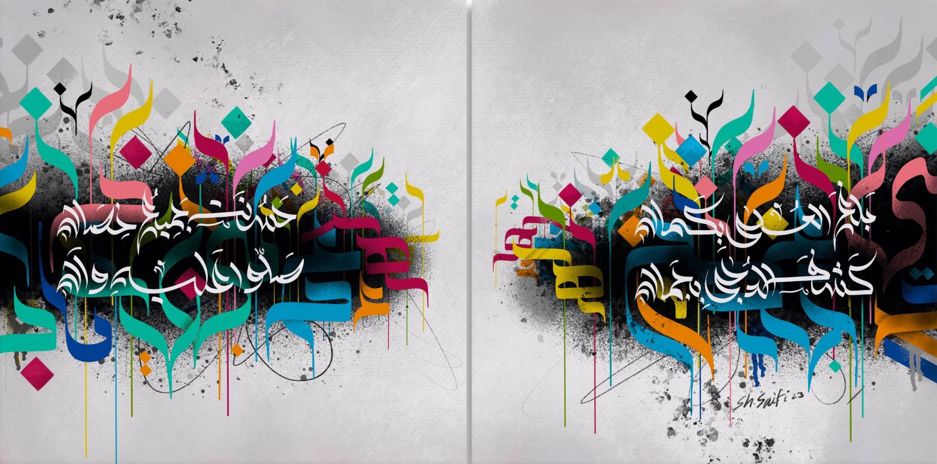 Sheikh Saifi is a Pakistani Contemporary Artist, Calligrapher and Multimedia Designer based in Dubai, United Arab Emirates. Who passionately found & created his own humble path to train himself to be what he is today and aims Limitlessly Higher to grow each day. From the awestruck childhood play of mixing colors to innovating his own Hair Paint Brush, He has only challenged himself with new hurdles to mark his living inspirations into an Art in History.